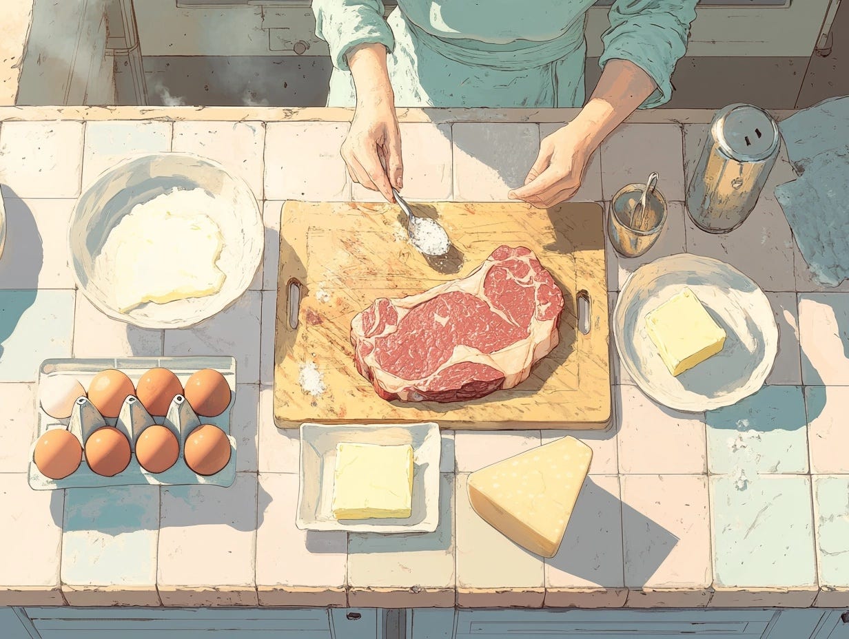 Animal foods only. Think meat, poultry, fish, eggs, animal fats (like butter or tallow), and sometimes dairy if tolerated. No plants, grains, or processed carbs.